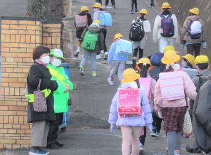 PTAと更生保護女性会の方々があいさつ運動をしてくださいました。寒い中、ありがとうございました。これからも気持ちよいあいさつができるようにがんばります。