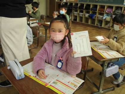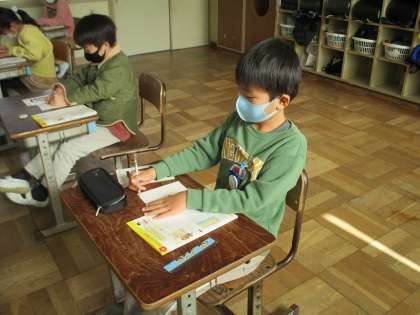 2年生の書写では,「年賀状づくり」をしていました。
