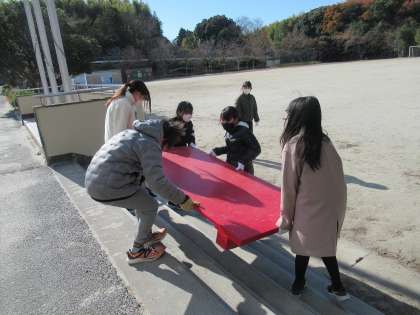 12/20 (火)6年生愛校ボランティア 公開日 2022/12/20 更新日 2022/12/20 旭東+(プラス) 6年生が3学期のなわとび大会にむけて、新しいなわとび台に取り替えていました。きれいになったなわとび台の上で、記録も伸びるかもしれません。