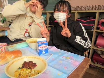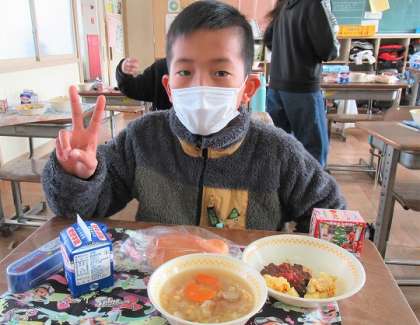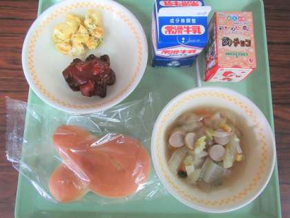 12/22(木) 今日の給食 公開日 2022/12/22 更新日 2022/12/22 旭東+(プラス) 今日のメニューは、クロスロールパン、牛乳、もみのきハンバーグのトマトソースかけ、パンプキンサラダ、ポトフ、セレクトデザートでした。楽しみにしていたセレクトデザートに、みんな満足そうでした。
