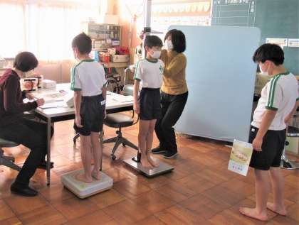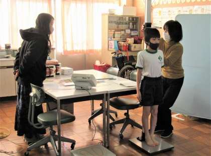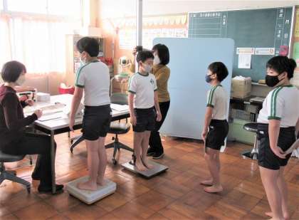 保健指導のあとは、身長・体重測定です。