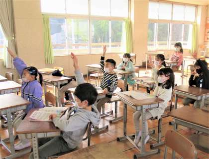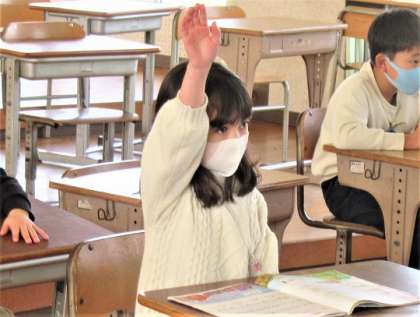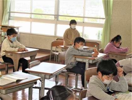 範唱を聴いて、曲の感じをつかみ、気付いたことを発表していました。