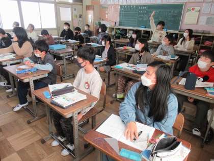 正五角形のかきかたをみんなで考えていました。中心の角度が何度になるかを計算し、コンパスと分度器を使って、かいていました。