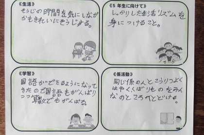 4年生の教室掲示です。各自の3学期のめあてが掲示してありました。