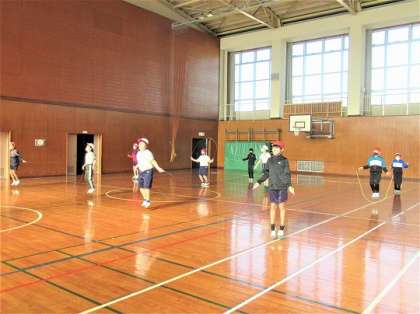 5年生の体育では、なわとびの学習をしていました。