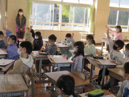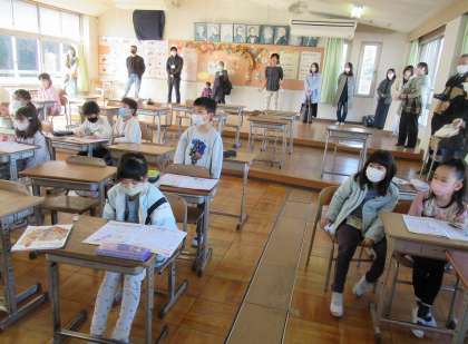 曲を聴いて、自分たちがイメージした楽器を発表することができました。