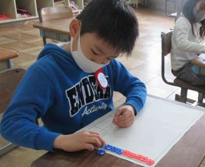 最後にはおはじきをはじくゲームで得点を読み取り、点数を比べていました。