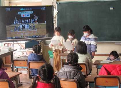 1/26(木) 体験入学で 公開日 2023/01/26 更新日 2023/01/26 旭東+(プラス) 1年生はお兄さんお姉さんとして、新1年生体験入学のお世話をしました。まずは、教室で小学校の生活や行事について説明しました。