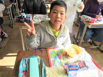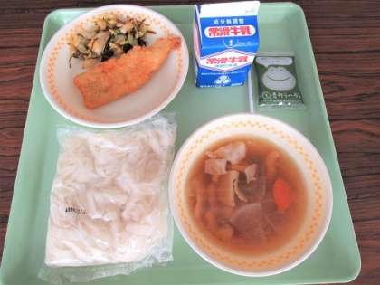 1/26(木) 今日の給食 公開日 2023/01/26 更新日 2023/01/26 旭東+(プラス) 今日のメニューは、きしめん、牛乳、和風かけ汁、愛知県産にぎすのフライ、白菜の昆布和え、ういろうでした。久しぶりの麺にうれしそうにしている児童も多く見られました。