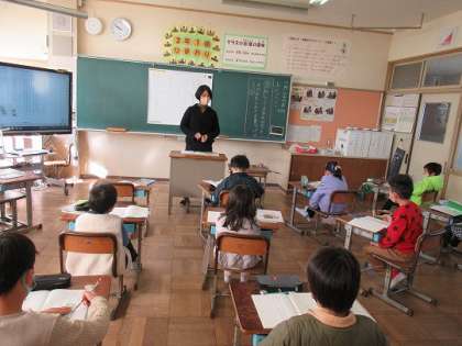 2年生の国語では、「おにごっこ」を学習しています。ことばに気をつけて読み,わかったことを説明できるよう学びます。