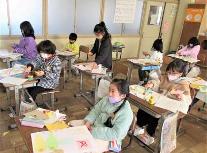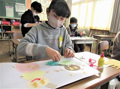 3年生の図工では、「いろいろうつして」の作品づくりをしていました。