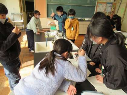 0度から凍り始めること、体積が増えることなどを学んでいました。