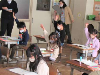 2/6(月) 何時かな 公開日 2023/02/06 更新日 2023/02/06 旭東+(プラス) 1年生の算数では、「なんじなんぷん」の学習をしていました。研究授業で、多くの先生方に見られています。みんながんばっていました。