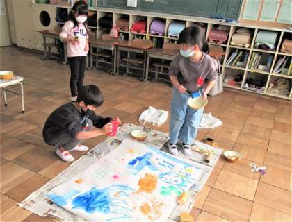 道具をうまく使って、たのしい作品をグループで作っていました。