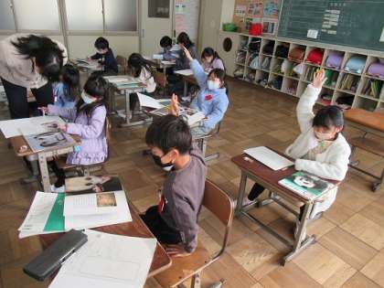 本を読んで、わかったことを発表できるようにまとめていました。