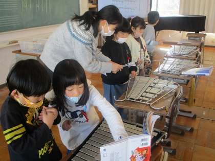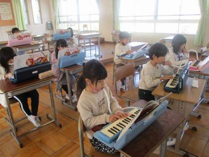 1年生 音楽で合奏の練習をしたよ 公開日 2023/02/09 更新日 2023/02/09 旭東+(プラス) 音楽で、「きらきら星」の合奏の練習をしました。 鍵盤ハーモニカ、鉄琴の2種類の楽器を使って、 教え合いをしながら、腕を磨きました。