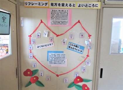 2/12(日) 見方を変えると 公開日 2023/02/12 更新日 2023/02/12 旭東+(プラス) 保健室前の掲示です。自分が短所だと思っていることも、見方を変えると長所になります。「みんなちがって、みんないい」。これからもさまざまな人との関わりの中で、自分をつくっていきたいですね。