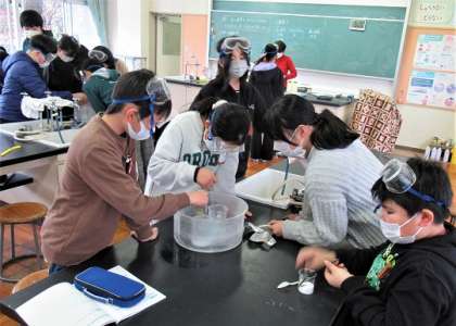 常温で溶ける量と液を温めたときに溶ける量の違いを実験をして調べていました。