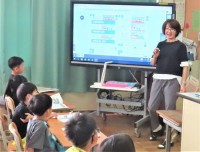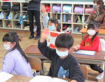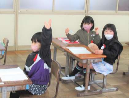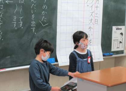 ペアで考えたクイズをクラスのみんなに出して、3ヒントで答えてもらっていました。