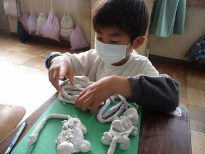 1年生の図工では,「いっしょに おさんぽ(立体)」の学習をしていました。