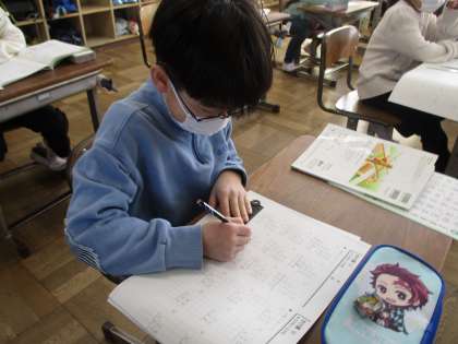 3年生の算数では,「2けたをかけるかけ算の筆算」の学習をしていました。