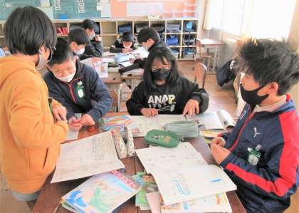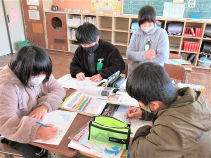 グループで、話し合ったり教え合ったりして問題を解決していました。