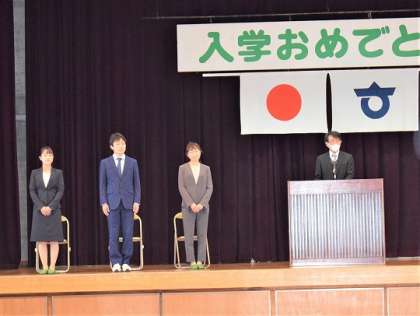 赴任式を行いました。新転任の先生方から自己紹介がありました。