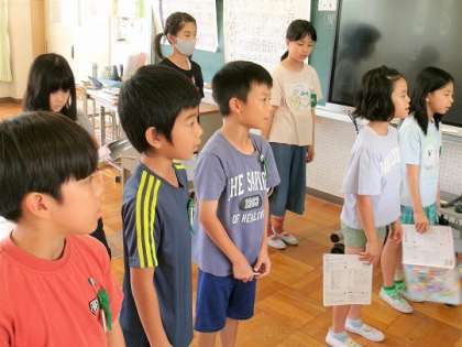 上のパートと下のパートの児童に分かれて練習していました。