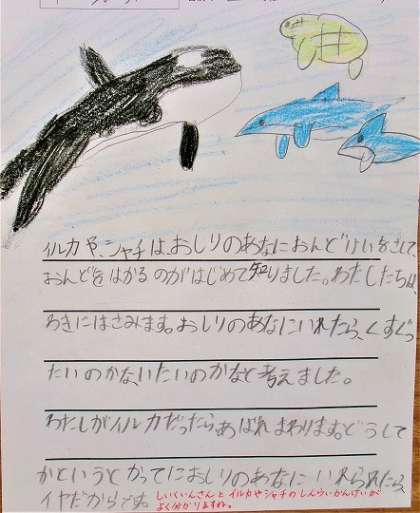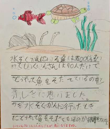 名古屋港水族館に社会見学に行き、発見したことを各自がまとめています。