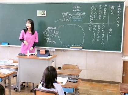 3年生の道徳では、「よわむし太郎」を読んで考えていました。
