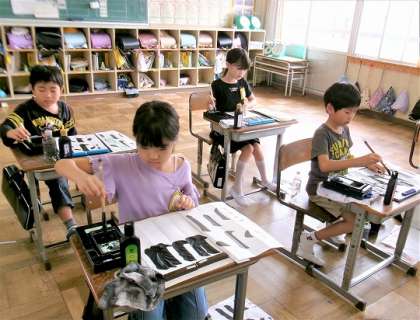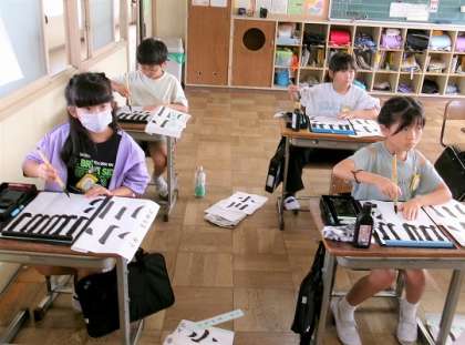 文字を部分ごとにして、「はね」「てん」を1つずつ練習していました。