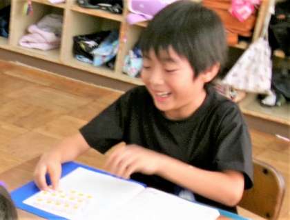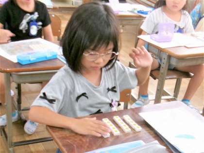 5×1、5×2……のように、かけ算の式に書く方法と答えの出し方を学習していました。