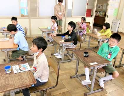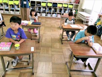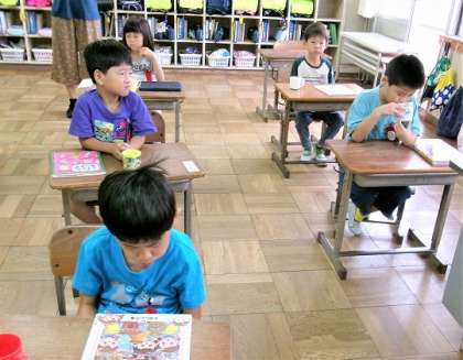 1年生の様子です。もうすっかり慣れて、みんな平気。