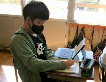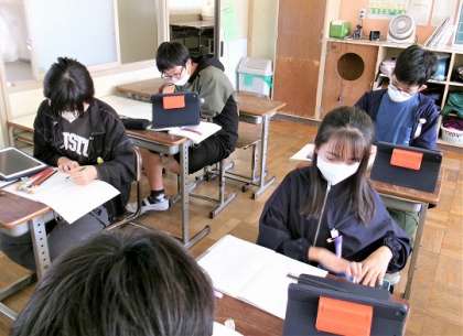 ノートに各自が考える秋を詠み、イメージする絵も描いていました。