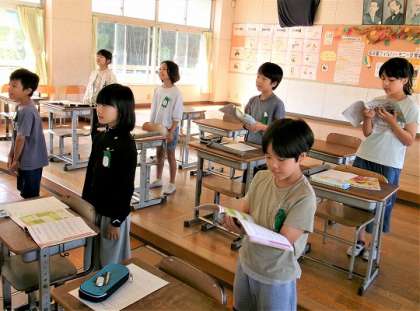 4年生の音楽では、「ゆかいに歩けば」を学習しています。