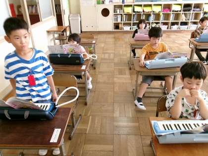 4年生の音楽では、「すずめがちゅん」を学習していました。