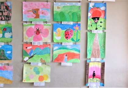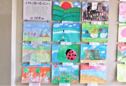 5年生の図工「言葉から思いを広げて」の作品展示です。