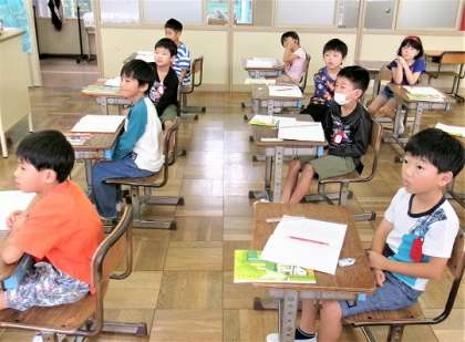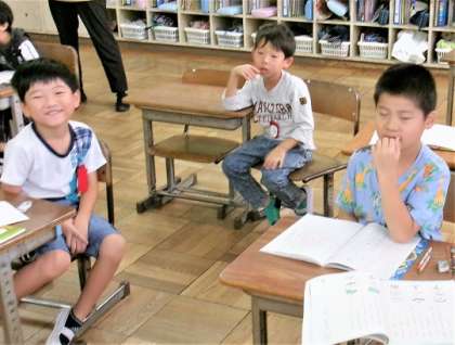 絵と漢字を見比べ、絵から漢字ができていることを理解していました。