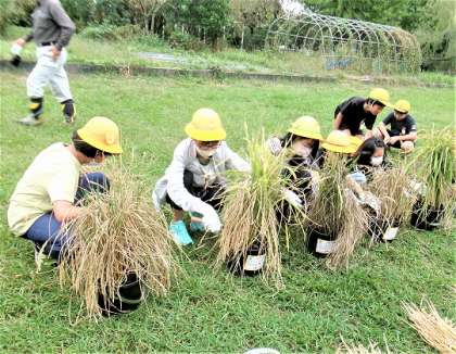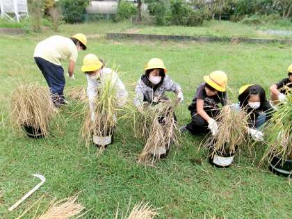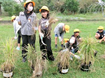 鎌の使い方も教えていただきました。初めて使う児童もいる様子です。