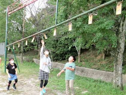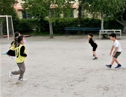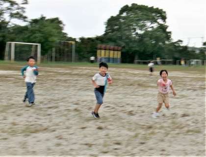 昼放課に運動場に出て、皆で遊んでいました。