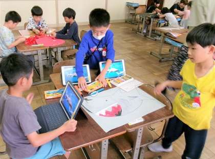 1年生の図工では、海の生き物を作っていました。