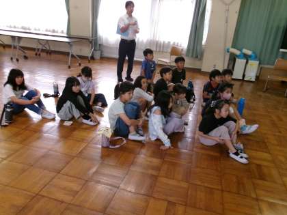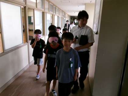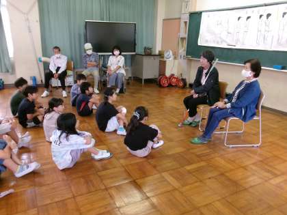 4年生は、講師に久保田さん、新海さん、青木さん、藤原さん、川内さんをお迎えして、ガイドヘルプについて学習しました。