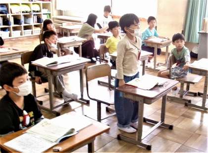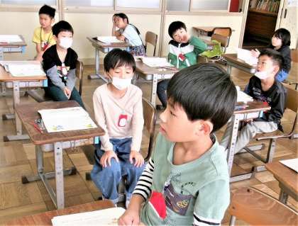 ゆっくり、はやく、大きく、小さくといろいろな声の出し方で読んでいました。