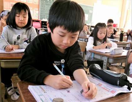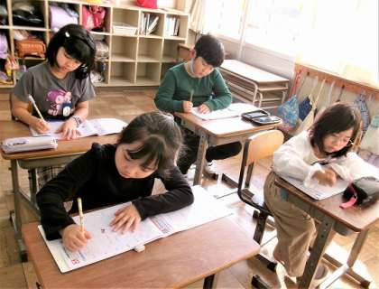 2年生、朝のドリルタイムの様子です。