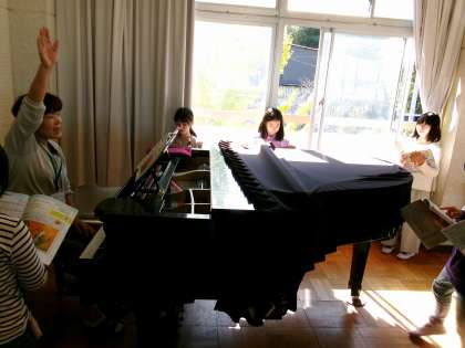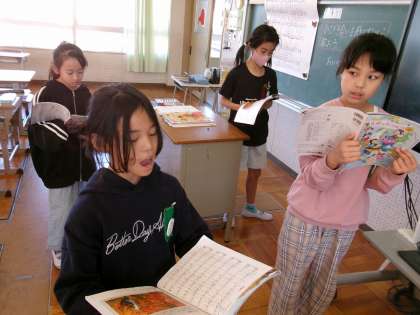 11/6(水) 響きあいを感じて 3 公開日 2024/11/06 更新日 2024/11/06 旭東+(プラス) 追いかけや同じリズムになっている場所があることに気づき、響きあいを感じながら歌っていました。