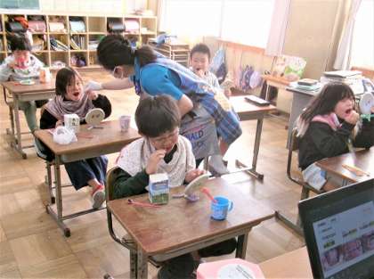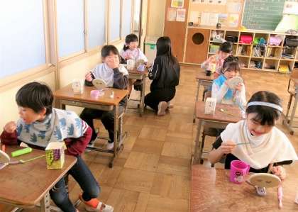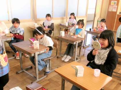 歯垢や歯石について学習したあと、染め出しで口の中をチェックしました。