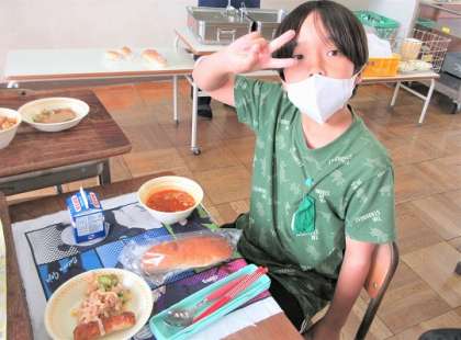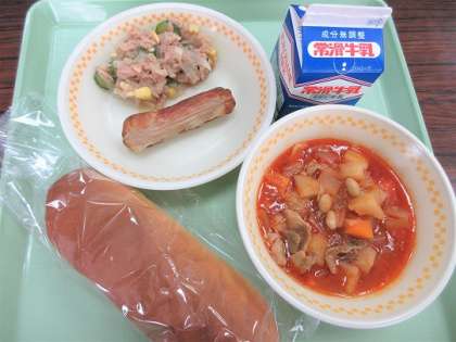 11/8(金) 今日の給食 公開日 2024/11/08 更新日 2024/11/08 旭東+(プラス) 今日のメニューは、ミルクロールパン、牛乳、焼きフランクフルト、ポークビーンズ、大根サラダでした。