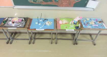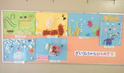 2年生の図工「ざいりょうからひらめき」の作品展示です。