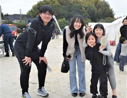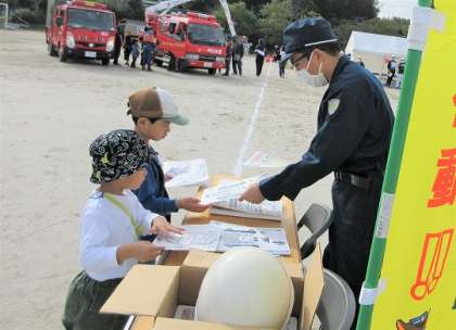 運動場では、スタンプラリーも行われました。参加する児童たちの姿も見られました。