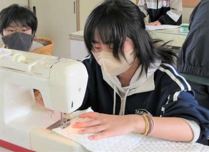 今日は、脇の縫い代を開いて口あきを縫う作業です。
